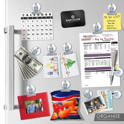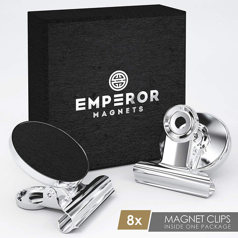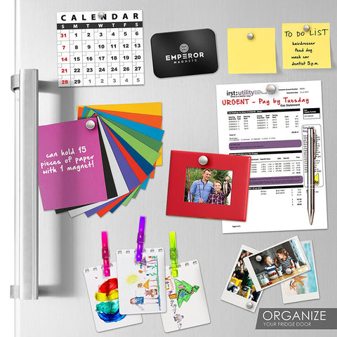 Emperor Magnets - Strong Refrigerator Magnets | Mini Powerful Fridge Magnets | Small Square Kitchen Magnet Hook Clips | Heavy Duty Metal Silver Finish Ideal For Office Whiteboard, Dry Erase Board